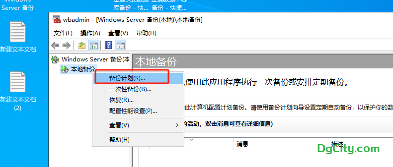 2、在“本地备份”选择“备份计划”,启动向导后,选择“下一步”。