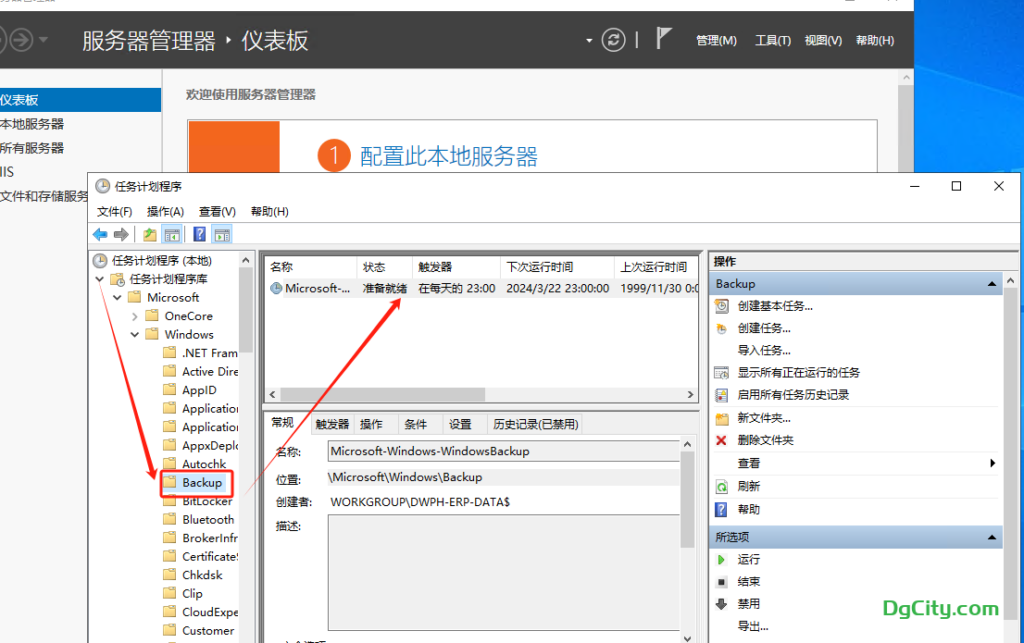 由于向导中没有按周或其他时段设置,如需要更改备份周期,需利用到windows server 2022任务计划来设置。